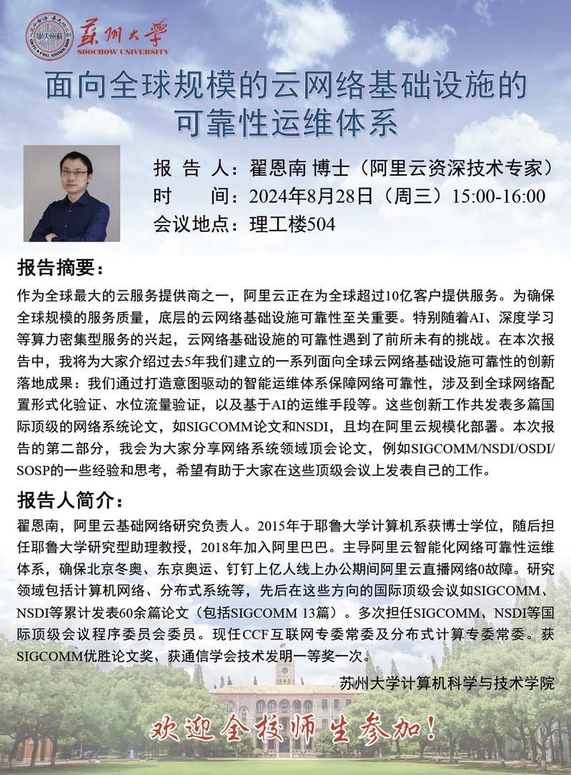 学术报告:面向全球规模的云网络基础设施的可靠性运维体系