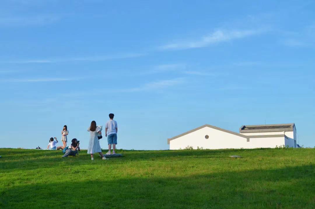 坐在情人坡上,眺望着远方