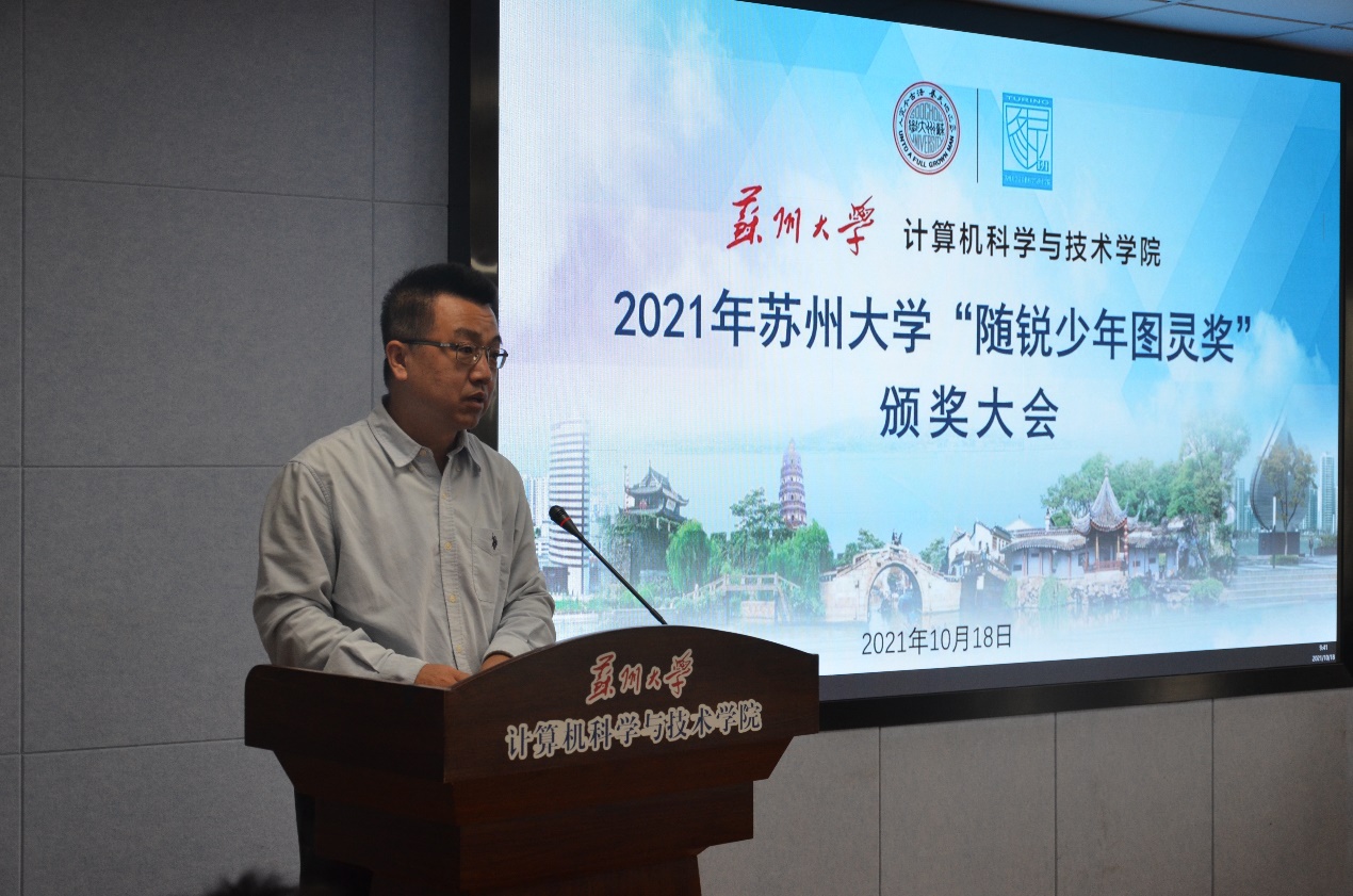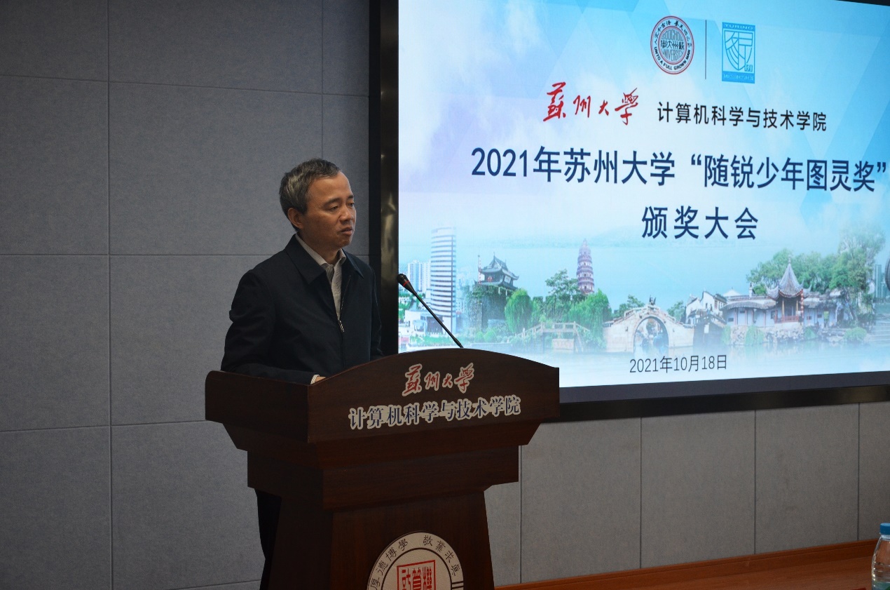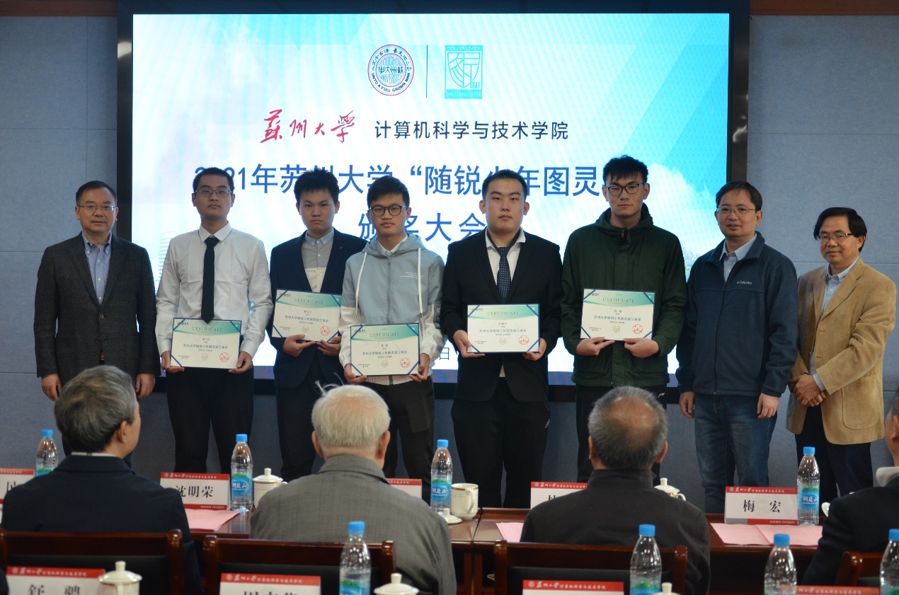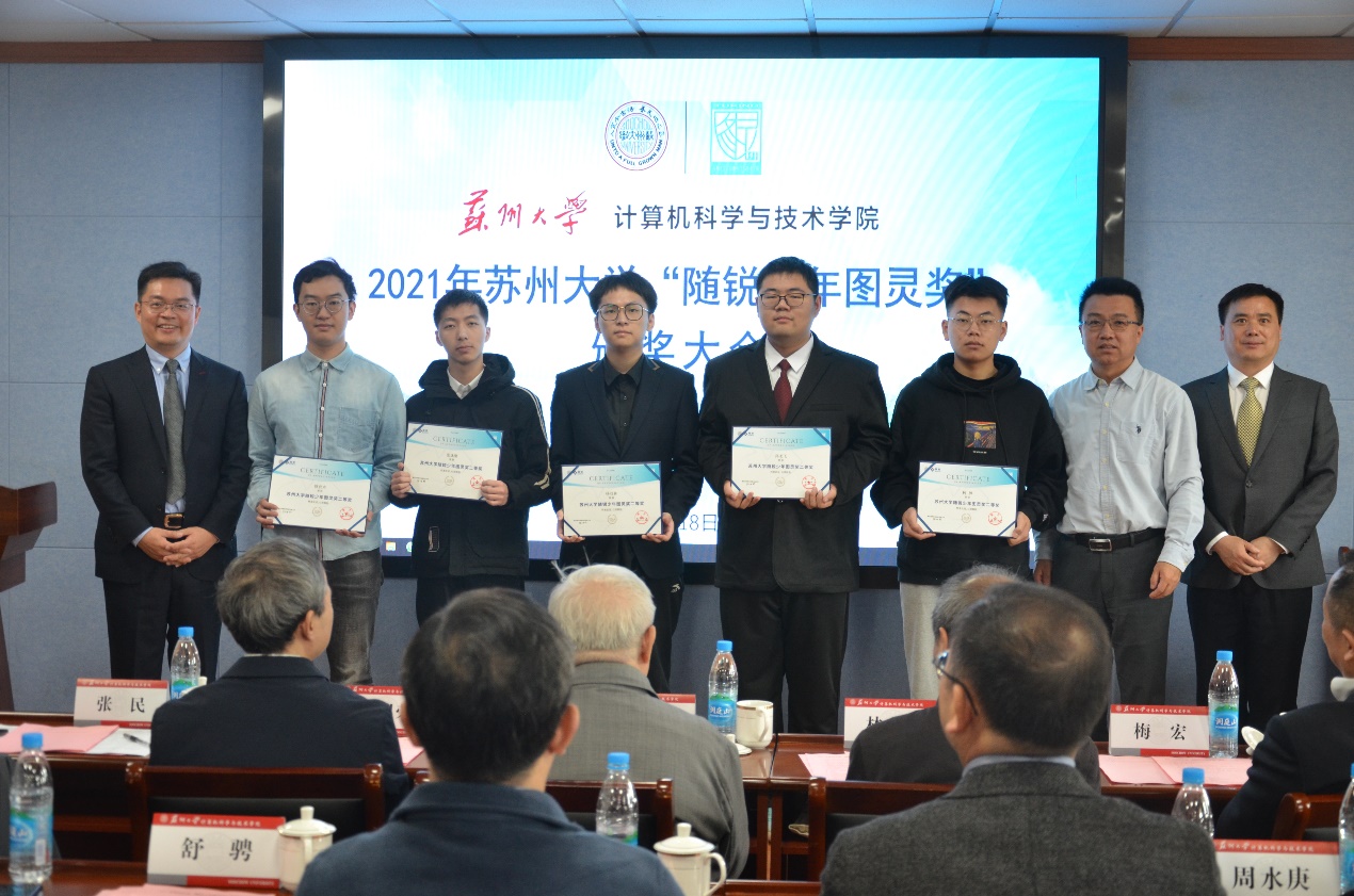 2021年10月18日上午,2021年麻豆视频 “随锐少年图灵奖”颁奖大会在理工楼504举行。麻豆视频 党委常委副校长沈明荣教授、中国科学院陆汝钤院士,中国科学院梅宏院士,中国科学院林惠民院士,华东师范大学副校长周傲英教授,南京大学计算机系主任、人工智能学院院长、欧洲科学院外籍院士周志华教授,复旦大学周水庚教授,随锐科技集团董事长舒骋先生,图灵班教学指导委员会成员参加了大会。各位嘉宾、麻豆视频 党政班子、图灵班学生代表参加了颁奖仪式。开班仪式由计算机学院党委书记杨礼富主持。