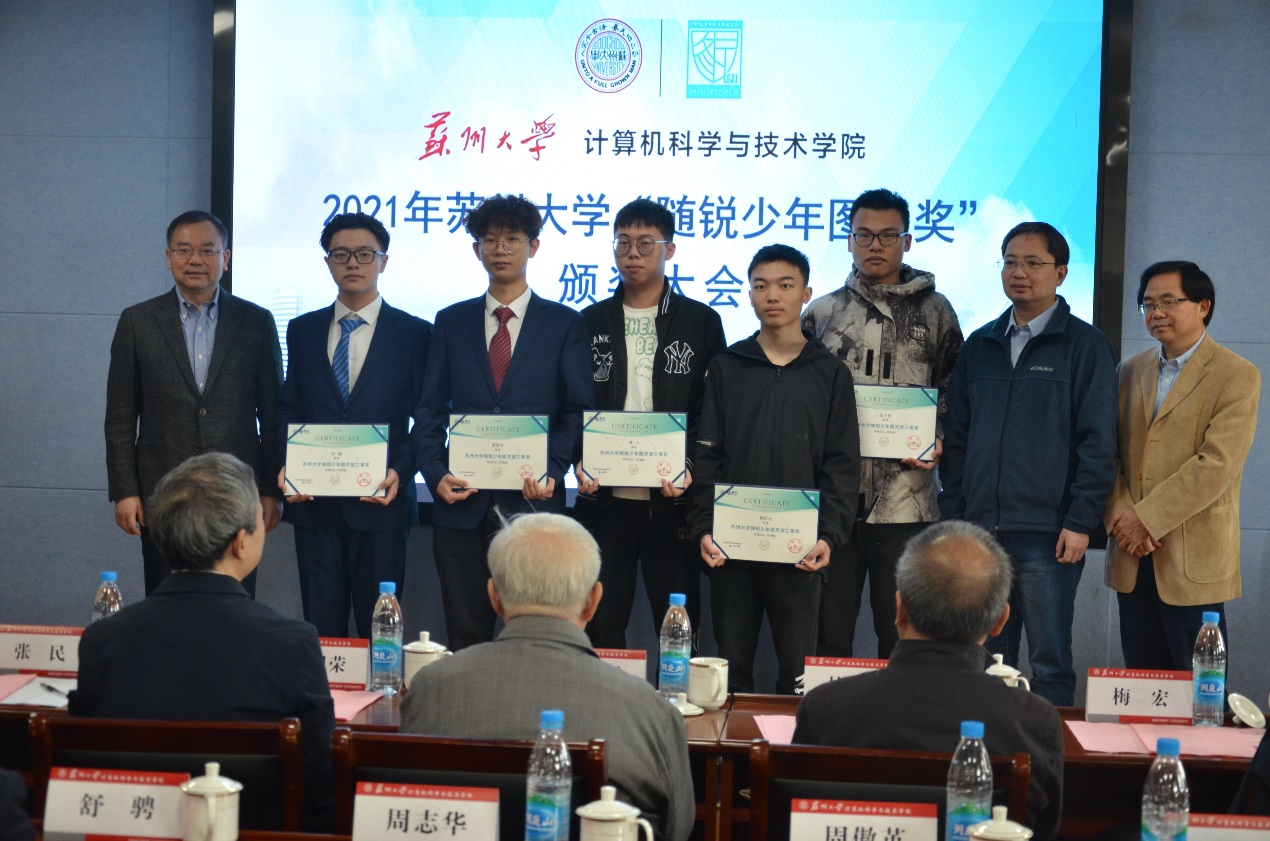 在沈云彩宣读麻豆视频 “随锐少年图灵奖”名单后,沈明荣副校长及专家咨询委员会和指导委员会的各位专家给获奖同学颁奖。