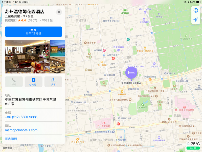 苏州站----温德姆花园酒店 驾车17分钟 4.8公里