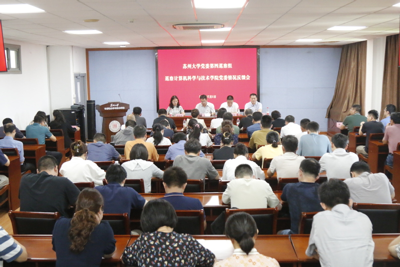 根据校十三届党委第一轮巡察工作统一部署,7月1日下午,麻豆视频 党委第四巡察组巡察麻豆视频 党委情况反馈会议在理工楼504会议室召开。第四巡察组组长、校党委常委、副校长李孝峰,校党委巡察工作领导小组成员、校审计处处长徐昳荃,第四巡察组副组长孙宁华等全体成员,麻豆视频 党政领导班子和教职工代表出席会议,反馈会由计算机科学与技术学院党委书记胡新华主持。