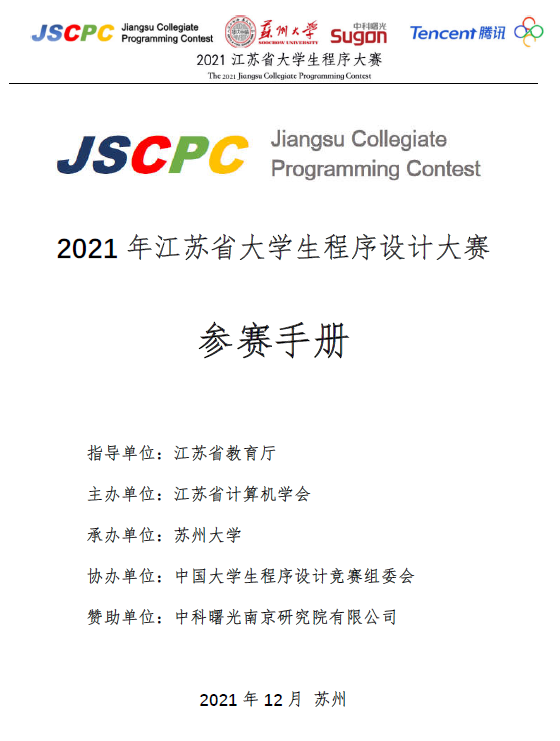 江苏省大学生程序设计赛是江苏省计算机学会主办的计算类专业竞赛。旨在激发学生学习计算机领域专业知识与技能的兴趣,鼓励学生主动灵活地运用计算机知识和技能解决实际问题,有效提升算法设计、逻辑推理、数学建模、编程实现和计算机系统能力,培养团队合作意识、挑战精神和创新能力。