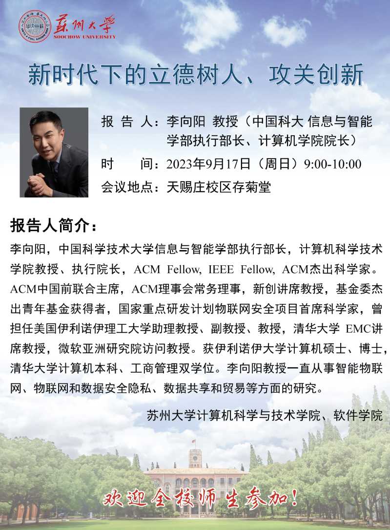 学术报告:新时代下的立德树人、攻关创新