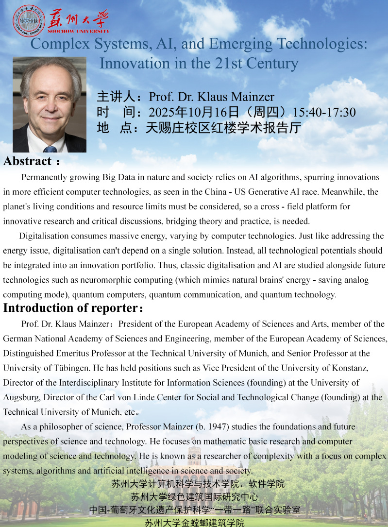 学术报告:Complex Systems, AI, and Emerging Technologies: Innovation in the 21st Century