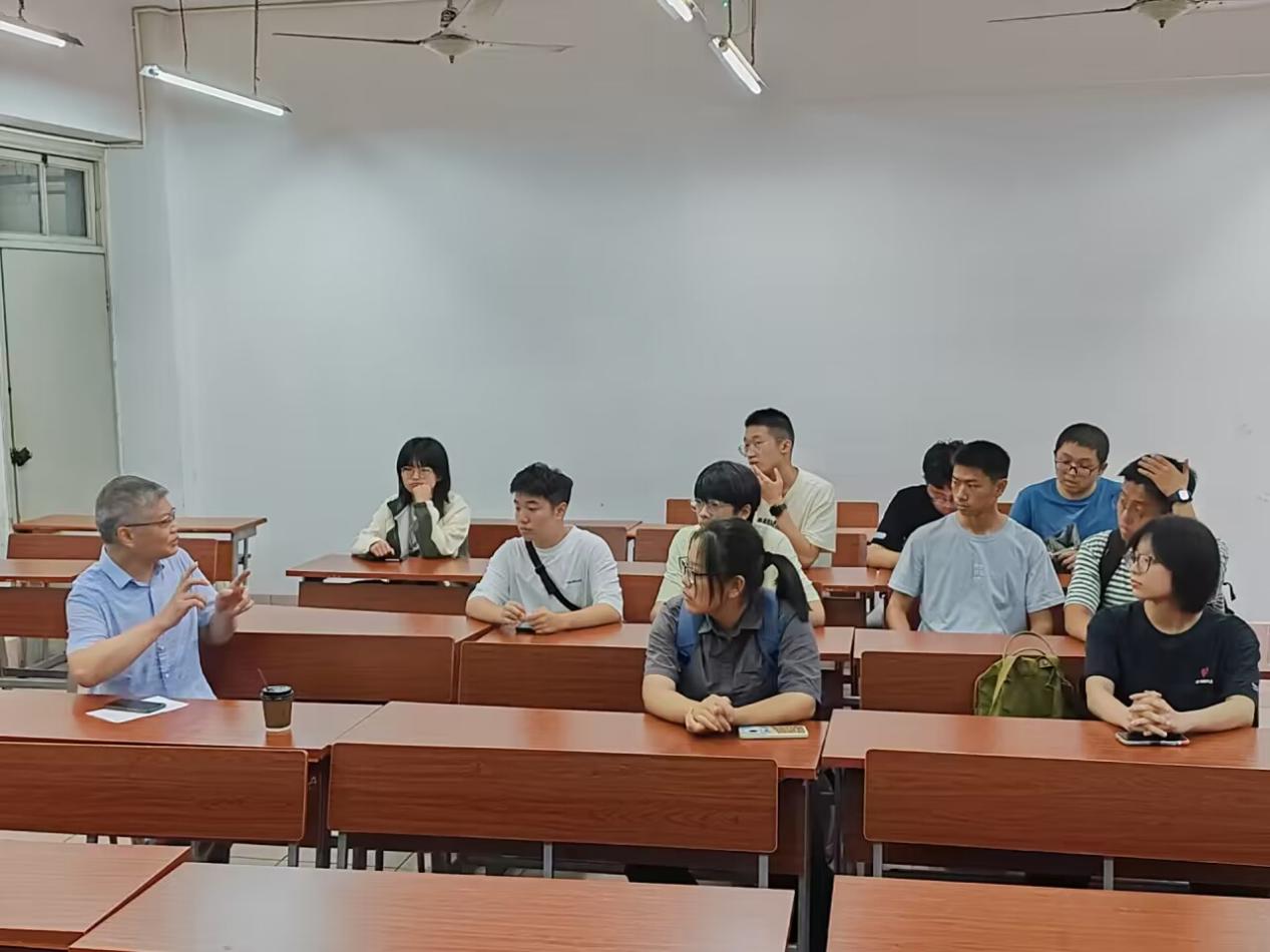 接着,四位优秀的导师代表为同学们进行了分享。蔡蔚然教授以多个生动的例子,为同学们介绍了接下来的学习生活模式,倡导同学们以兴趣作为引导开展研究,激励了同学们不断探索未知的世界。