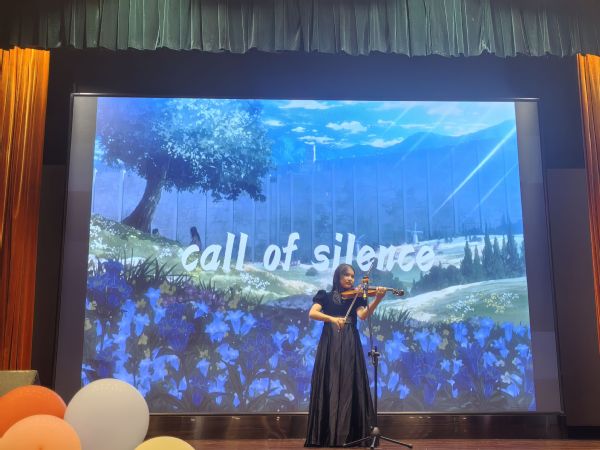 本次迎新晚会不仅有动人的歌声,更有精妙绝伦的乐器演奏,为现场增添了浓厚的艺术气息。25级软工3-1班毛婧晶同学带来小提琴独奏《Call of Silence》,琴声悠扬婉转,深邃的旋律仿佛在夜色中流淌,将观众带入一个宁静而辽远的音乐世界,令人沉醉。25级软工2-1班刘项宇同学以口琴演绎《成都》,轻柔的琴音如微风拂过心间,台下观众情不自禁地轻声应和,整个会场沉浸在温暖而怀念的氛围之中,余韵悠长。