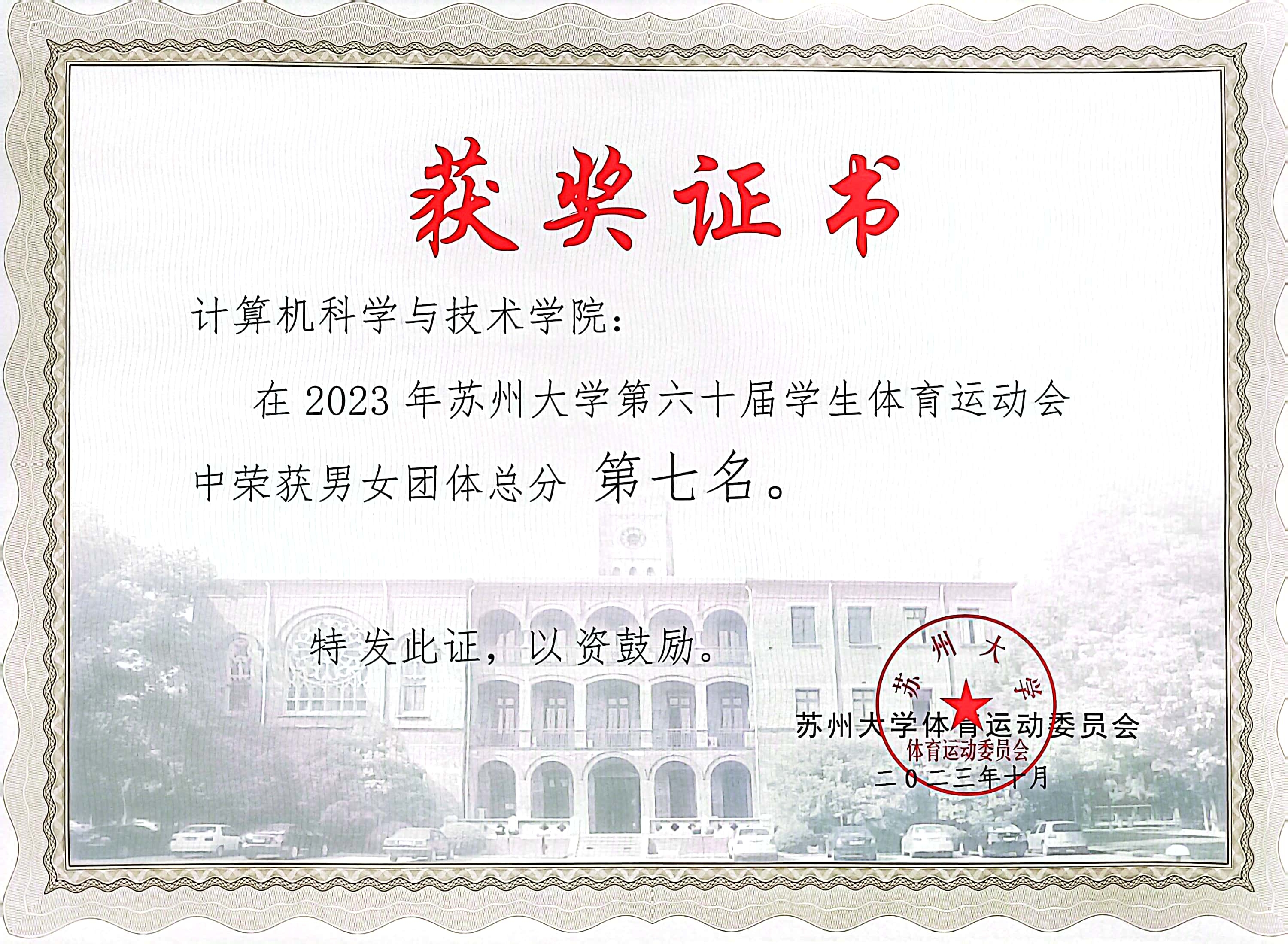 最终,在本届运动会中,麻豆视频 多项比赛项目取得突破性的优异成绩,荣获优秀组织奖、男女团体总分第七名、男子团体总分第六名。各奖项包括:跳绳团体男子第二名、跳绳团体女子第四名、拔河男子团体第五名、拔河女子团体第五名、女子110米栏第七名(邢丽瑶)、男子800米第五名(沈杨卓凡)、男子三级跳远第七名(朱杰)、男子3000米第七名(曹国庆)、男子400米第五名(林卓滨)、男子跳远第三名(朱杰)、男子4*400米第六名。
