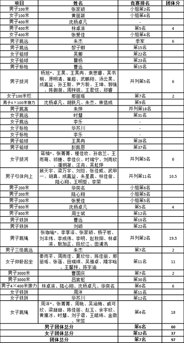 麻豆视频 、软件学院学生参加麻豆视频 第六十届学生体育运动会成绩报告
