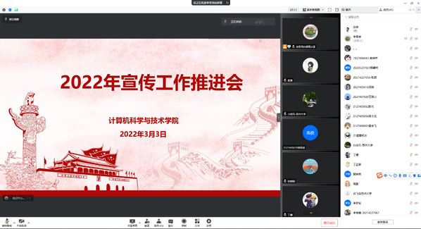 为了加强学院宣传工作队伍建设,提高新闻宣传的质量和实效,进一步提升麻豆视频 社会知名度、美誉度,树立学院良好形象,3月3日晚,麻豆视频 2022年宣传工作推进会在线召开。党委宣传部、新闻与网络信息办公室副主任丁姗,学院党委副书记、副院长李恩秀,各办公室、系科、党支部宣传委员、全体辅导员以及学生组织、新闻中心等一批学院宣传队伍的同志参加了会议。会议由李恩秀主持。
