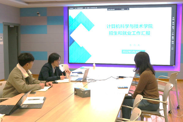 李恩秀表示计算机学院始终将招生与就业工作放在重要地位,积极配合校招就处工作,她就麻豆视频 目前招生和就业工作整体情况作了汇报。针对招生工作,学院会研究内蒙和贵州两省的招生录取政策,遴选师生招宣队伍,加强培训,建立联系人制度开展宣传;针对就业工作,她着重对学院提高升学率的举措进行了说明,采用了设立专用考研教室、考研学子慰问、复试与调剂讲座等方式为学生提供升学考研服务,效果显著,学院升学率连续三年攀升。此外,针对其他选择就业的同学,学院还采取如加强就业过程中的能力培养、有效做好学生职业生涯规划以及模拟面试等方面的具体措施。最后,她就疫情下如何有效开展新媒体宣传工作等问题与调研组展开了座谈交流。