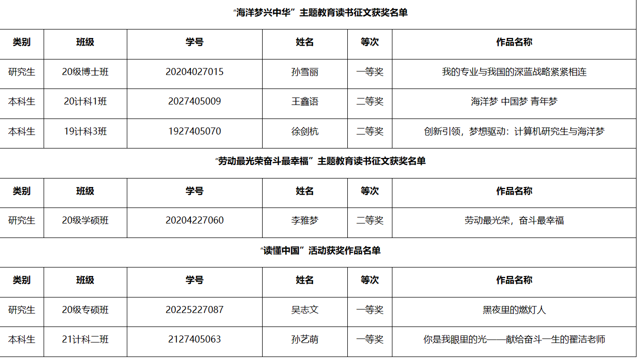 1、着力推进“思想育魂”教育品牌工作。学院关工委建立“立德树人”大讲堂,为青年学生系好人生“第一粒扣子”,钱培德校长主动为学生开展讲座,近距离与学生交流,引领同学志存高远、铸魂逐梦;费卫星老师身体力行,多次为分党校学员上党课,新生入学教育开展专题报告,为培养五育并举的行业领域科技创新人才打好基础;学院通过征文展示传播“五老”先进事迹,在本科生和研究生中广泛发动、精心组织,近百余人参加了“读懂中国”“海洋梦兴中华”“劳动最光荣奋斗最幸福”主题教育征文活动,经过遴选推荐参赛,最后有6人获得学校一、二等奖的好成绩。
