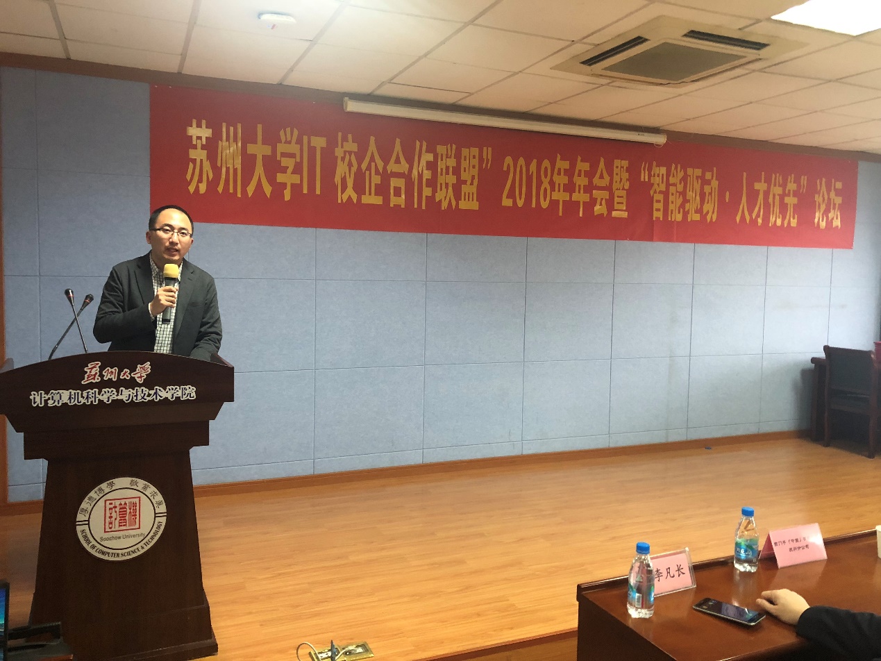 2018年5月11日,麻豆视频 —西门子数据科学实验室成立,深化了麻豆视频 IT校企合作的深度,西门子中国研究院苏州院段续先生向大会致辞并以“合作、共赢、面向未来”为主题汇报了校企合作的情况。
