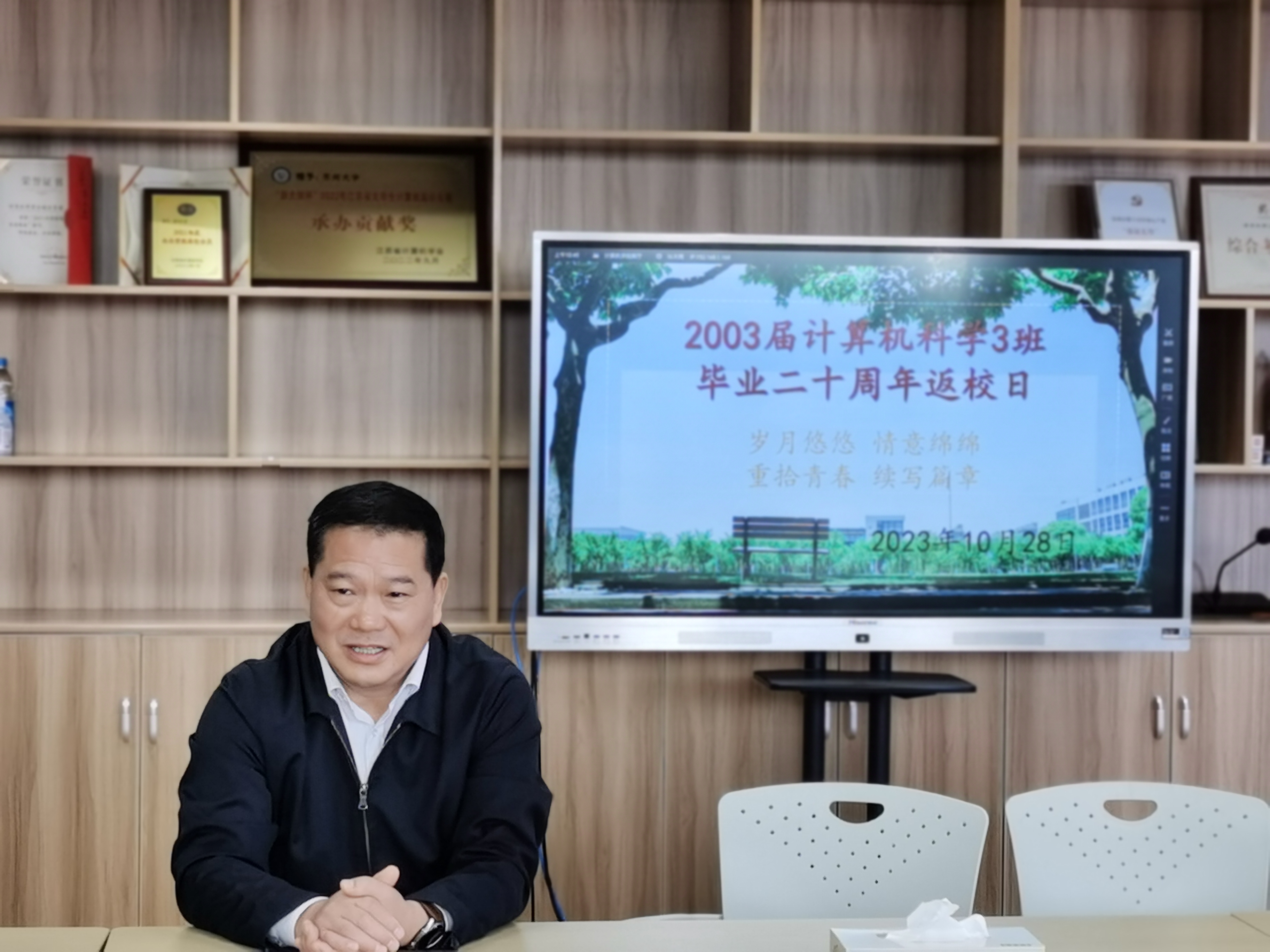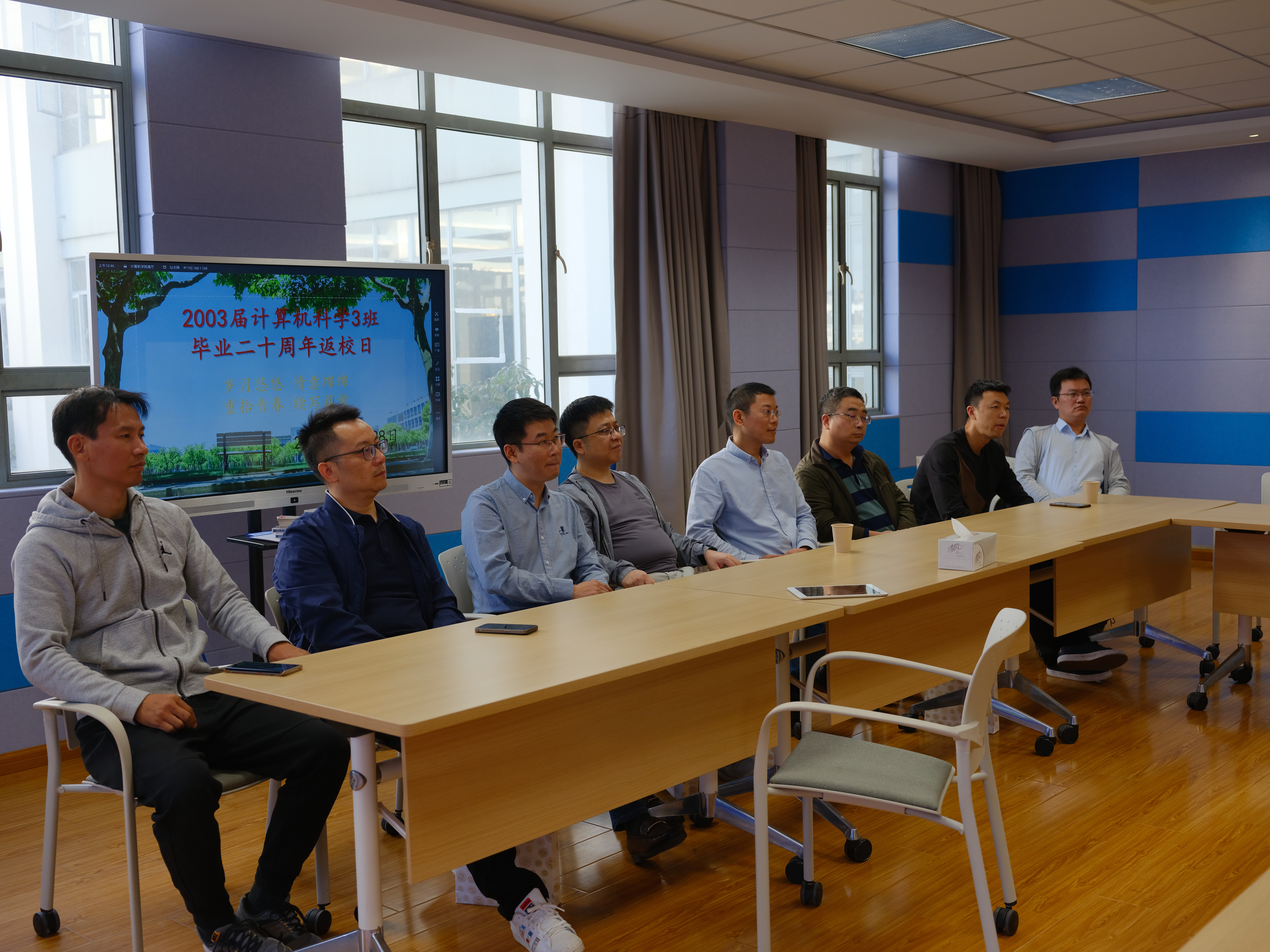 2023年10月28日,2003届计算机科学3班正值毕业二十周年。这一特殊时刻,理工楼214会议室汇聚了班级的部分校友,他们从周边城市赶来,再次踏上麻豆视频 校园的土地,举行了一场毕业二十周年返校座谈会,以庆祝友情、成就和回忆的二十年。本次活动,麻豆视频 党委书记胡新华老师、软件学院副院长,分管校友工作俞莉莹老师一起参加了校友座谈会。