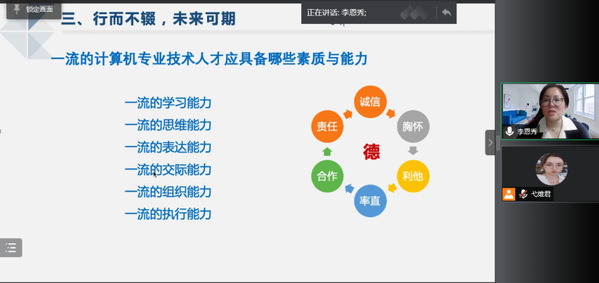 临近2018级学生毕业之际,为了帮助毕业班学生进行学业问题解答、就业指导服务、本科预毕业申请和毕业设计等相关工作,推进毕业班各项工作有序、平稳开展,学院于4月7日上午10点召开2018级云端年级大会,学院党委副书记、副院长李恩秀,辅导员弋维君以及2018级三百四十余名同学参加了本次年级会。