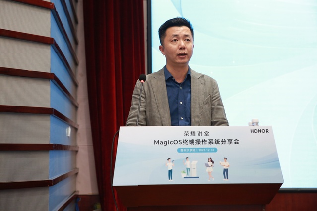 荣耀江苏业务部苏州总经理谭颜为青年学子做新思想公开课。首先介绍了荣耀公司的发展历程与机遇挑战。三年前,荣耀公司等国内科技企业受到了前所未有的挑战。为克服困难,直面挫折,荣耀公司主动求变。面对全球最强的竞争对手,荣耀人既有默默打拼的毅力,也有劈开一切的勇气和能力。荣耀成立三年来,已发展成为全球领先的智能终端提供商,后续还将致力于成为全球标志性的科技品牌。荣耀吸纳全球百余家企业优秀人才,面向国内顶级高校持续吸收优秀毕业生,60%为研发类员工,中国区员工硕士占比近50%,研发投入强度位居全国前六,打造业界领先的智能制造高地,引领多个板块产品的持续创新。三年来,新荣耀独立创业,不畏强者;恢复供应,积极成长;投资未来,构建能力;中国登顶,全球加速。通过分享,同学们对荣耀有了更深的了解,对国内高科技企业发展与生存状况有了全新的认识,也从荣耀之路上感受到了科技青年的自强与担当。
