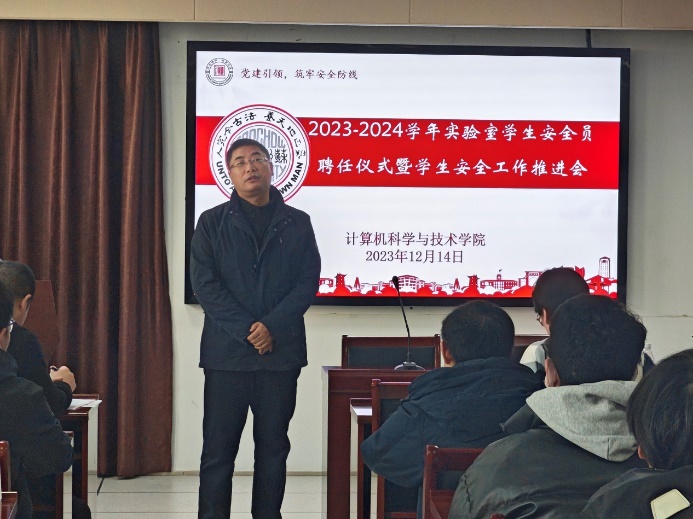 最后,居民发表了总结讲话。他首先对本次活动的成功举办表示祝贺,对受聘的安全员们表示感谢。他强调学院党委对实验室安全工作高度重视,希望安全员们切实履行职责,为学院的安全和稳定贡献力量。同时,他也希望广大同学能够积极参与到实验室安全工作中来,共同维护校园的安全与和谐。
