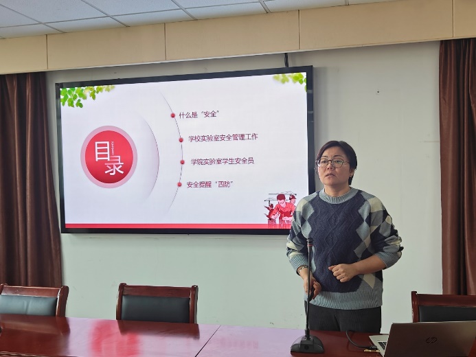李恩秀做了题为《党建引领,筑牢安全防线》的专题讲座。她详细介绍了 学院建立党建工作与实验室学生安全工作联动机制,充分发挥党建在实验室安全管理中的引领作用,如何通过加强党的建设来筑牢实验室安全防线。她详细介绍了学校、学院安全工作的要求和制度,以及学院实验室学生安全员要履行的岗位职责,还结合具体案例,深入浅出地进行安全“四防”提醒,从防汛防雷、防火防爆、防身心伤害、防“坏人”等方面,加强安全教育,让党旗在各个实验室高高飘扬。