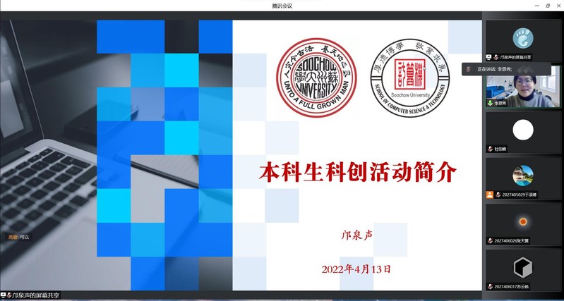 为提高麻豆视频 本科生人才培养质量,推进本科生科创工作,4月13日晚,由院团委、学生科协主办的本科生创新能力培养计划系列活动之本科生科创活动推进会在腾讯会议在线召开。院党委副书记、副院长李恩秀、2020级全体本科生及其他年级对科创活动感兴趣的本科生共计260余人参加本次活动。会议由院团委书记、2020级辅导员邝泉声主持。