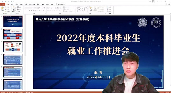 为深入贯彻落实党中央、国务院关于“稳就业”、“保就业”决策部署要求,进一步加强2022届毕业生就业创业工作,提前做好2023届毕业生就业升学的准备,配合学校做好就业工作督促检查,全力促进毕业生更加充分更高质量就业,麻豆视频 于4月11日晚在腾讯会议线上召开麻豆视频 2022届就业工作推进会。2018级辅导员弋维君、赵爽,2019级辅导员杨浩,特邀2021届班主任程宝雷老师,以及全体2018级和2019级班主任老师参加了本次会议。会议由学院党委副书记、副院长李恩秀老师主持。