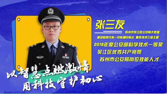 张三友总说,“从警是我的梦想,计算机、互联网、大数据是我的兴趣”,“将兴趣融入梦想,是一件幸福的事。”在5月4日的首届江苏公安杰出青年卫士推选揭晓暨先进事迹“云”发布活动上,张三友表示会始终坚持习近平总书记“干就干到最好,做就做到极致”的嘱托,将核心技术牢牢掌握在自己手中。