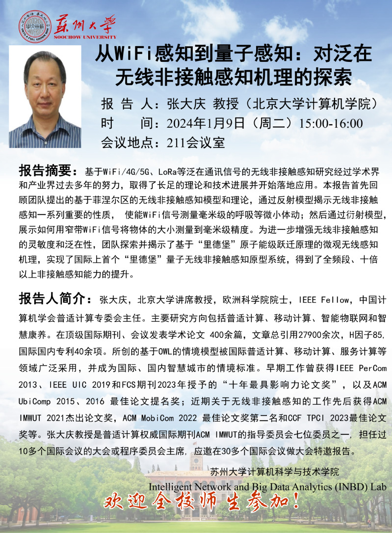 学术报告:从WiFi感知到量子感知:对泛在无线非接触感知机理的探索