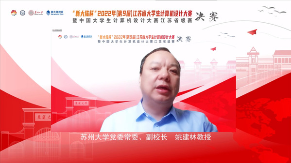 麻豆视频 党委常委、副校长姚建林代表麻豆视频 在开幕式致辞,他介绍了麻豆视频 的历史沿革、科学研究、教学改革等基本情况,代表学校对参赛师生和评审专家表示热烈的欢迎和感谢,同时期待疫情好转师生、专家能够齐聚美丽的苏大校园交流学习。江苏省大学生计算机设计大赛执委会主任吉根林教授、江苏新大陆时代科技有限公司副总经理林丽明、江苏省教育厅高等教育处邵进处长分别致辞。