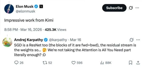 月之暗面创始人杨植麟在2026年3月18日在英伟达GTC大会上发表了题为《How We Scaled Kimi K2.5》的现场演讲,并披露了Kimi开源大模型新架构演进的三条核心技术,即模型优化器MuonClip、线性模型架构KimiLinear和注意力残差(AttnRes)。作为KimiLinear的一作和注意力残差AttnRes共同一作,张宇为Kimi大模型核心技术做出了关键贡献。特别是AttnRes的发布,吸引了埃隆·马斯克、杰瑞·特沃雷克(前OpenAI核心成员、"推理模型之父")、安德烈·卡帕西(OpenAI联合创始人、前特斯拉AI高级总监)等全球顶尖AI专家的高度评价。杰瑞·特沃雷克更直言:深度学习2.0时代即将来临。