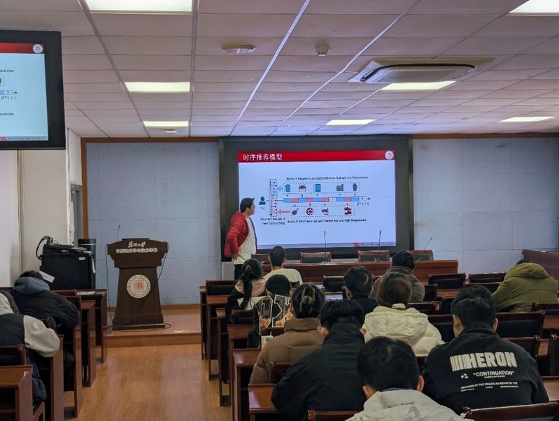分享会邀请到两位近期在顶级国际会议与期刊发表成果的研究生进行经验分享。来自先进数据分析实验室的许华阳同学,其研究成果《基于自适应小波增强的时序推荐模型》被人工智能领域顶级会议AAAI 2026录用,并获选为口头报告。张瀚文同学则在网络测量与安全领域取得重要进展,论文被计算机网络CCF-A类期刊IEEE/ACM Transactions on Networking(TON)录用。