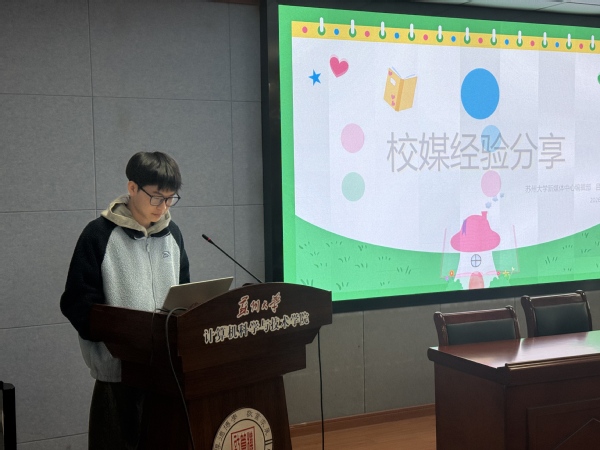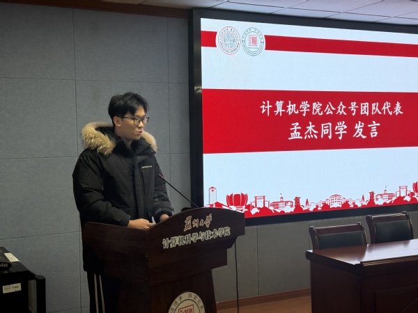 在经验分享环节,学院公众号团队代表孟杰同学发表了讲话。他结合自身经历,分享了团队在内容策划、日常运营中的点滴故事与成长感悟,细数工作中的收获与感动,生动展现了运营团队凝心聚力、精益求精的良好风貌