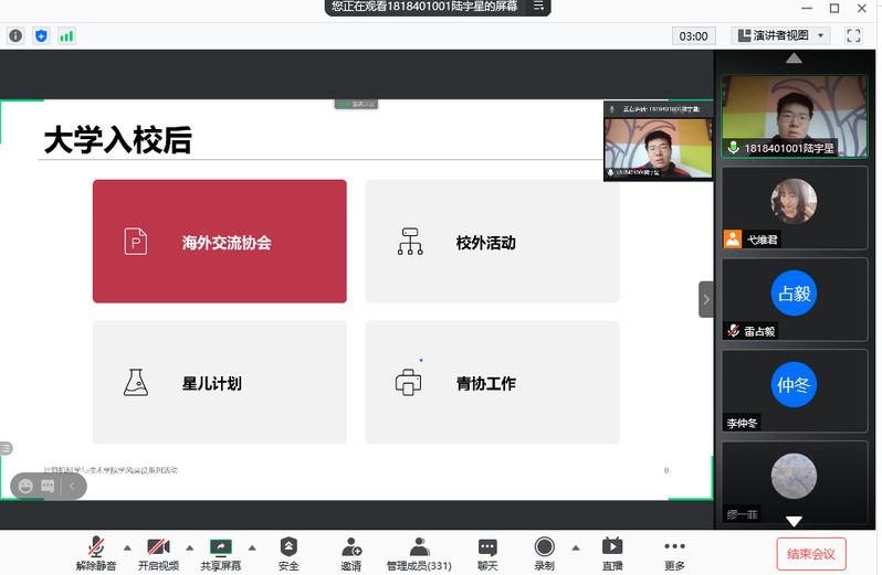 2021年3月4日上午,麻豆视频 麻豆视频 展开学风建设系列活动“标兵宣讲”。在3月5日“学雷锋日”来临之际,为学习雷锋精神,践行社会主义核心价值观,本次标兵宣讲以“不忘初心担使命 志愿服务我先行”作为主题。活动严格在麻豆视频 疫情防控办的监督下于腾讯会议线上进行。
