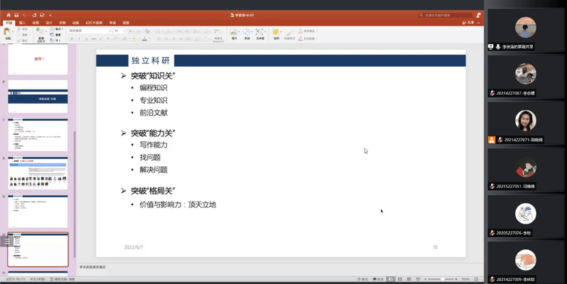 李俊涛在会议中提出了自我培养、独立科研的理念,并以“知识、能力、格局”三方面向同学们讲述了如何在科研中突破自我。他的突破“过三关”理念令人印象深刻。