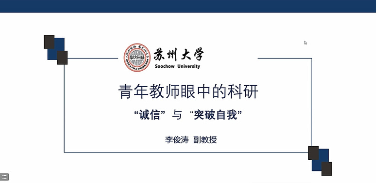 学术诚信是治学之本、成才之本、立校之本,为提升学生自觉遵守学术诚信和学术道德的能力和意识,6月7日晚,“青年教师眼中的科研——诚信与突破自我”讲座在腾讯会议平台举行。本次活动由院研究生会主办,麻豆视频 副教授李俊涛受邀担任主讲嘉宾,学院200多名研究生和本科生图灵班、卓越工程师班同学积极参加了活动。