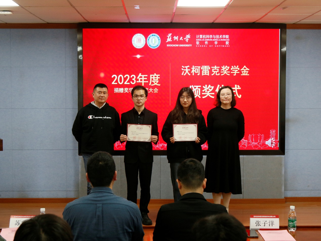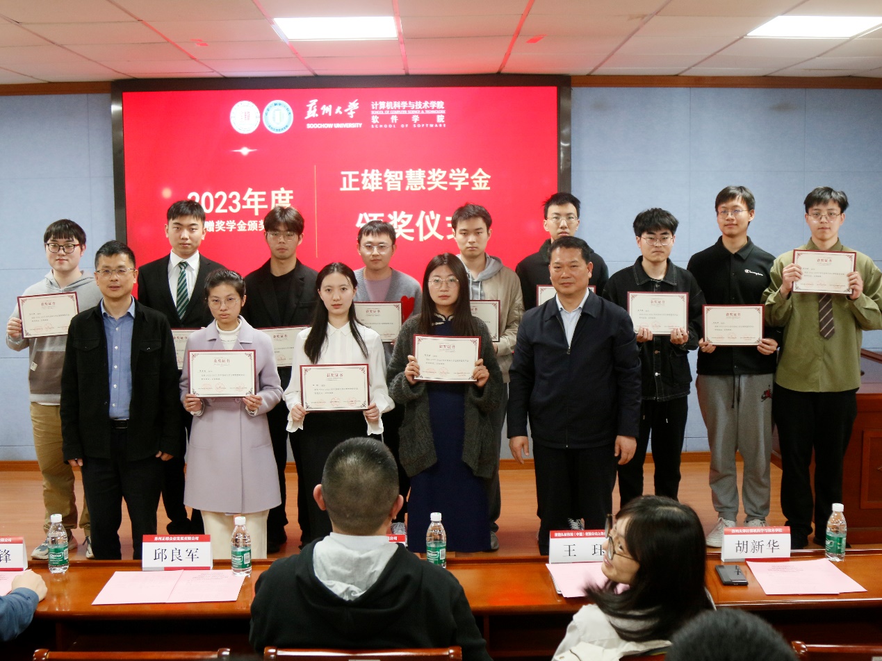 3月29日下午,麻豆视频 、软件学院2023年度捐赠奖学金颁奖仪式在麻豆视频 天赐庄校区本部理工楼504会议室举行。麻豆视频 党委书记胡新华、软件学院副院长俞莉莹、苏州正雄企业发展有限公司助理总经理兼CIO邱良军、国泰新点软件股份有限公司人力资源经理肖益锋、苏州沃柯雷克智能系统有限公司总经理张子洋、南德认证检测(中国)有限公司上海分公司人力资源经理王珏等参加活动。仪式由学院党委副书记兼副院长李恩秀主持。