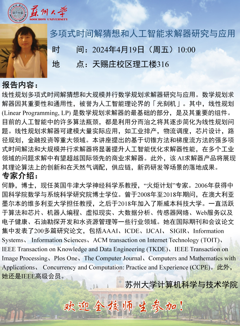 学术报告:多项时间解猜想和人工智能求解器研究与应用
