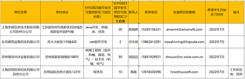 2023届毕业生毕业实习单位信息(第二批)