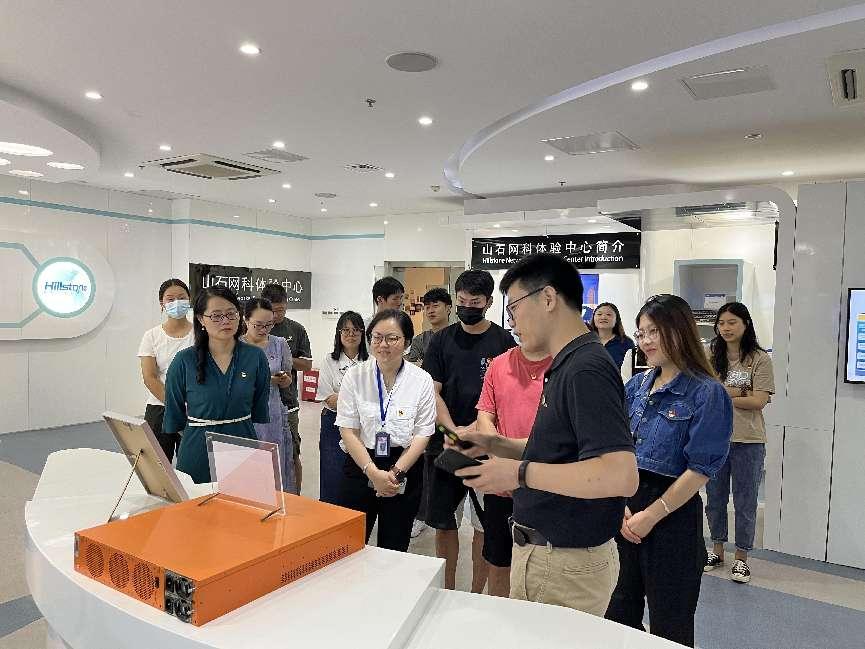 学院一行先实地参观了山石网科公司展厅、研发中心和工作环境,认真听取了公司的发展历程、公司文化、企业特色、主营业务等,全方位了解公司情况。