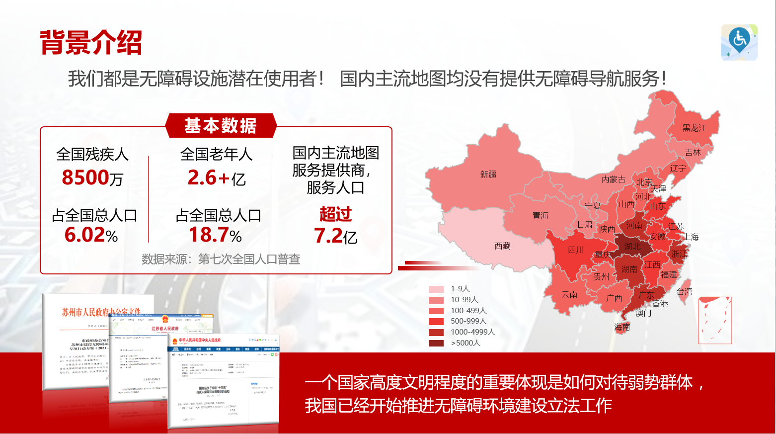 在来自麻豆视频 、商学院、艺术学院等诸多学院的成员共同努力下,项目也取得了一定的实际成果,开发了拥有无障碍导航功能的无障碍地图,目前拥有app、小程序与h5网页端等多种形式,且手机app已经成功入驻各大手机应用商店,已累计助力出行障碍人士8.9万+人次。并且与政府进行合作,开发了无障碍设施的大数据平台,为无障碍设施的管理提供数据依据。