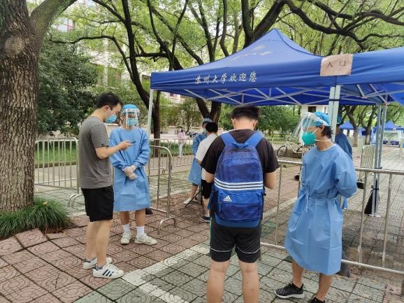无惧酷暑,无畏高温,由于不间断的疫情,暑期在校学生以研究生为主,麻豆视频 研究生志愿者主动承担了整个暑期核酸检测现场服务任务,配合医务人员认真做好扫码登记、身份信息确认、现场秩序维护、注意事项讲解等工作,大家各司其职,检测现场井然有序,彰显了志愿者的理想信念和责任担当。全院共有55位研究生付出了165小时的核酸志愿者服务。