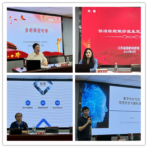 本次培训为期三天,内容丰富。师资方面,既邀请了省市机要保密局的领导莅临指导讲课,又安排了行业的专家进行专题授课;课程设置方面,既有保密形势和网络安全等宏观态势的深入分析,又有关于定密管理隐私保护等实操业务的具体指导;教学形式方面,既安排课堂学习交流,又组织赴杭州、昆山现场学习,希望大家珍惜难得的学习机会,紧密结合本单位、本部门,本人的工作实际,认真的学习思考,深入交流,切实把本次培训班的学习成果转化为谋划保密工作的创新思路,加强保密管理的过硬本领,筑牢保密的防线的有效举措。