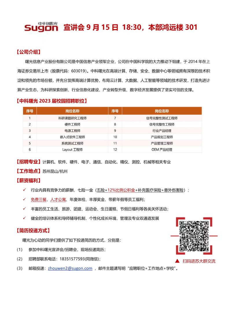 宣讲会|中科曙光2023届校招