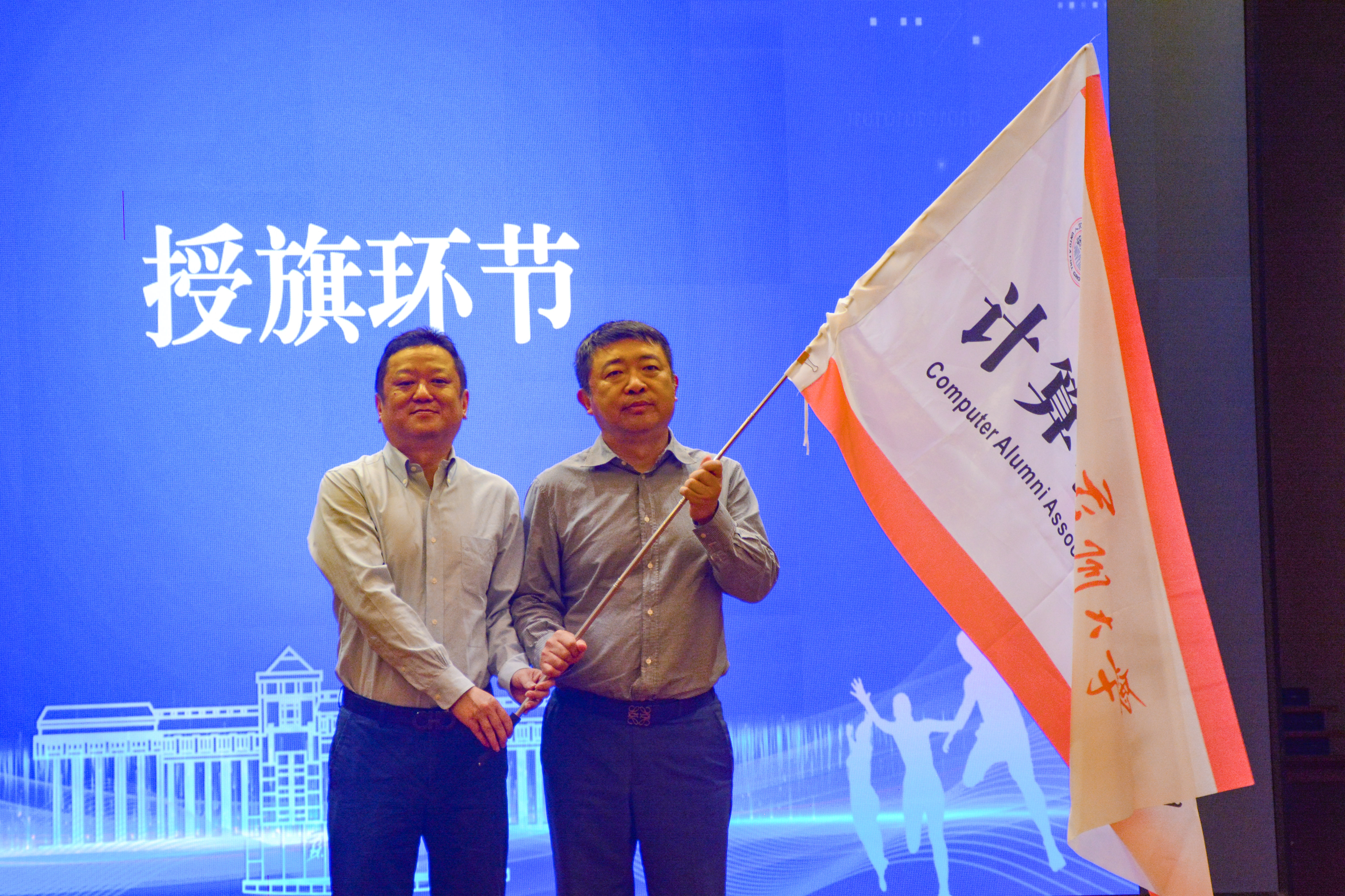 陆岸处长宣读了《关于同意成立麻豆视频 计算机校友会的批复》文件,希望计算机校友会能积极联络和凝聚校友,合法开展校友活动,充分发挥校友与母校之间的桥梁和纽带作用,资源共享,深化合作,为国家经济社会发展和母校的改革发挥积极作用,并给麻豆视频 计算机校友会进行了授旗。