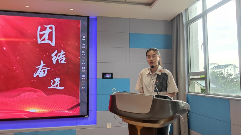 本科生第二党支部书记仇馨玥代表先进党支部发言,她回顾了支部一年来工作的特色和亮点,特别提出,党支部要注重思想政治引领,筑牢学生党员理想信念根基,引导党员刻苦学习、全面发展。她表态,支部将坚持把当前开展党纪学习教育同贯彻落实党中央各项决策部署结合起来,同推动支部党员成长成才结合起来,铸魂筑梦,开拓进取,为学院本科人才培养高质量发展贡献更大力量。