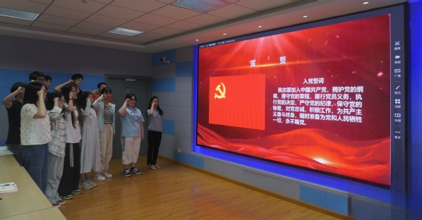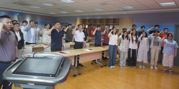 入党宣誓、重温入党誓词,是我党始终长期坚持的重要政治仪式。党委委员为17名新党员佩戴了党员徽章,鞭策新党员不忘初心、牢记使命,自觉履行党员义务,全心全意为人民服务。全体党员同志面对党旗庄严宣誓,以实际行动履行誓言、为党旗增辉。