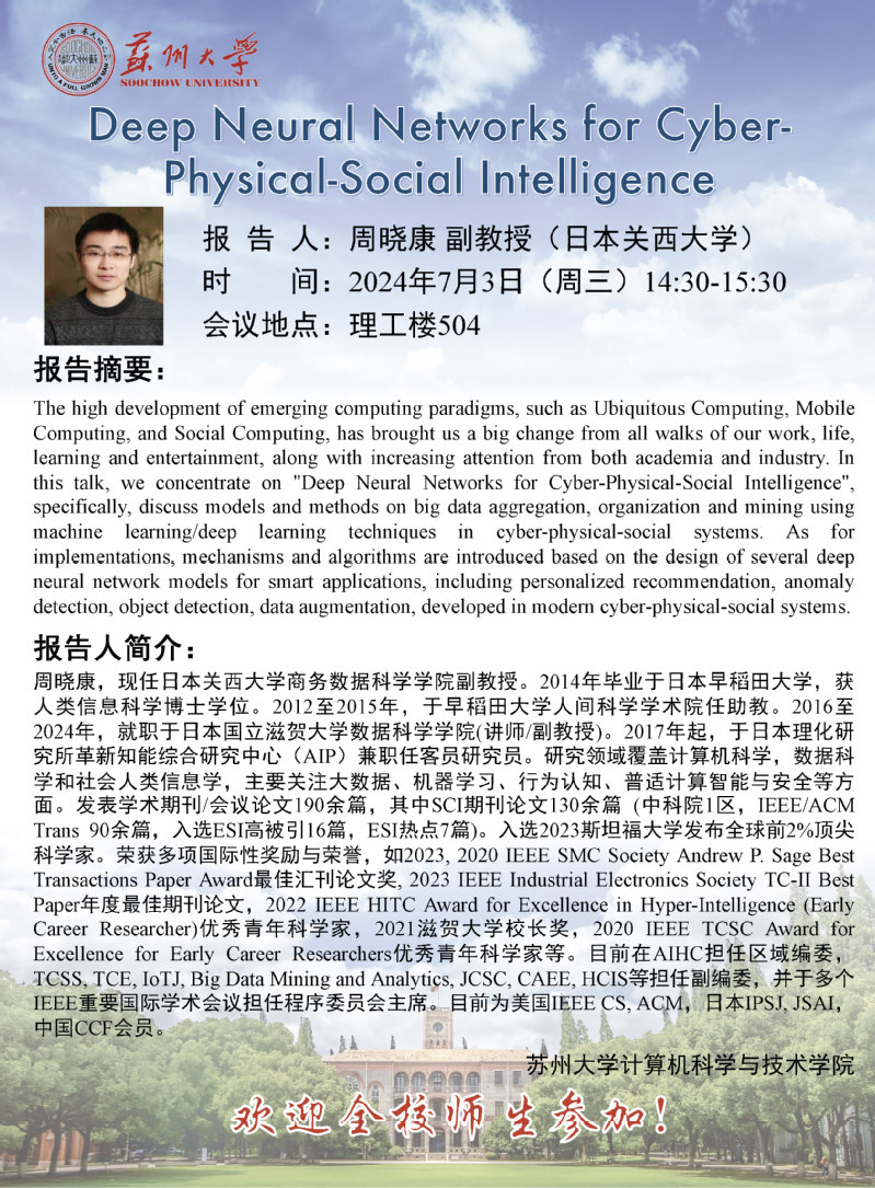 学术报告:Deep Neural Networks for CyberPhysical-Social Inteligence