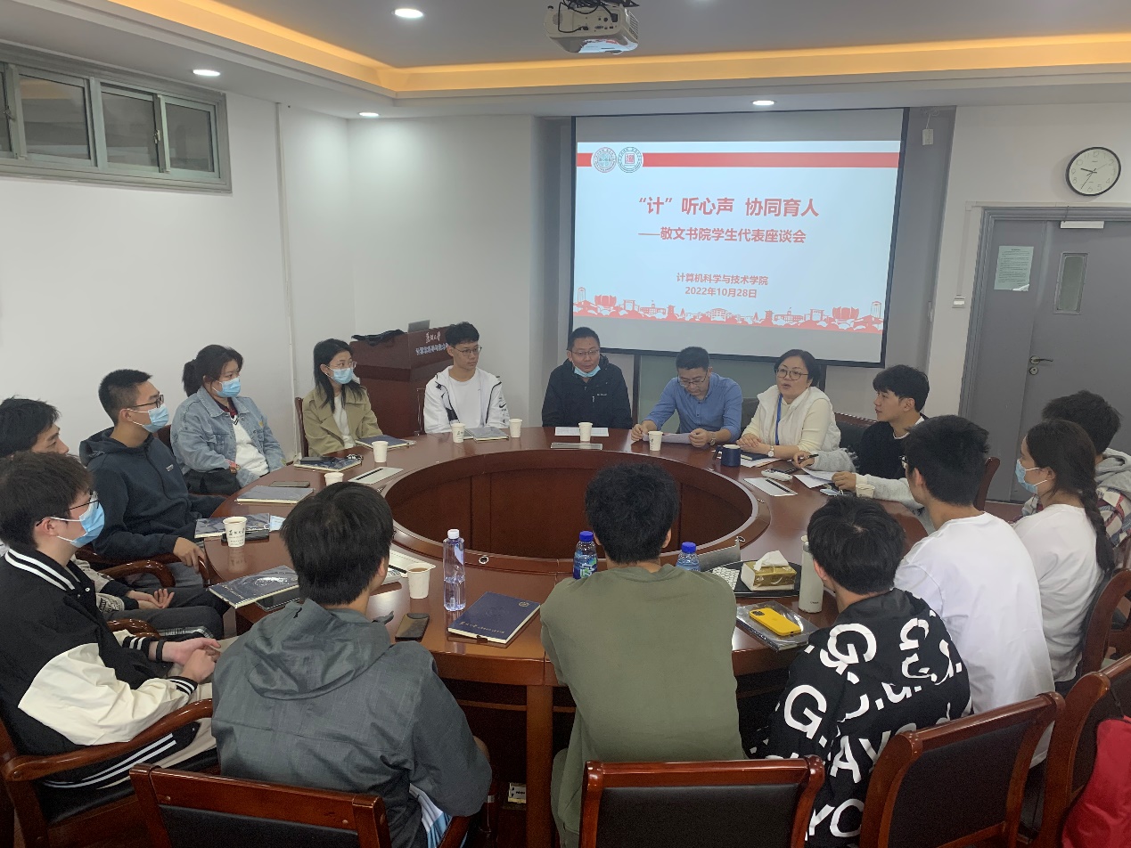 为了开好此次座谈会,学院在计算机学院的全体敬文书院同学中进行了问卷调查,主要对加入敬文书院原因、进入书院后的发展以及两院教学、管理、服务方面的建议意见进行摸底。会上,李恩秀首先对书院同学们的精神面貌和学习生活状态高度肯定,然后结合调研结果和与会同学就两院管理模式和条例、分工进行深入探讨。她表示,敬文书院的同学来自不同专业,多学科交叉融合氛围为大家开拓眼界、提升综合素质能力提供平台的同时也带来与本专业同学交流不足等问题。为此,她任命2020级优秀学生代表王力擎为敬文-计算机学院联络组组长,希望同学们尽快适应两院学子身份,加强互动交流,主动向优秀学长学姐学习取经,多与本专业同学来往,成长为卓越型人才。