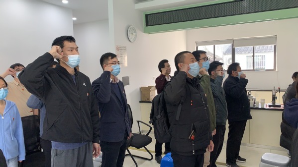在正式活动开始前,首先进行了重温入党誓词仪式。大家共同高举右拳,面对鲜红的党旗庄严宣誓。铿锵有力的声音,表达了大家对党的无限忠诚、热爱和听党话、跟党走的坚定决心。