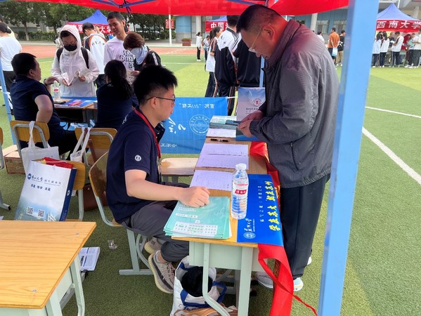 在各高中咨询会现场,老师们认真布置宣传展位,张贴醒目的宣传横幅、海报,吸引了众多考生与家长前来咨询。老师们结合历年考生分数位次、专业意向、招生计划等对学生进行一对一细致的志愿填报指导,耐心解答考生以及家长们的疑问,获得了广大考生以及家长的一致好评。