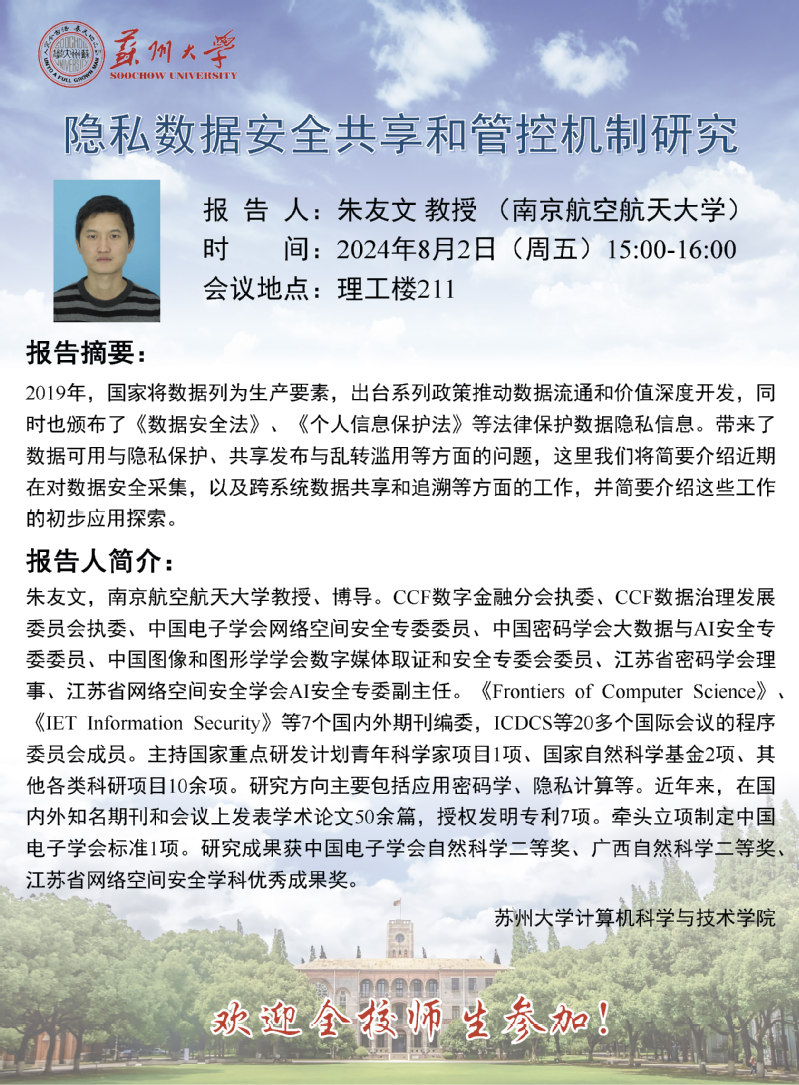 学术报告:隐私数据安全共享和管控机制研究
