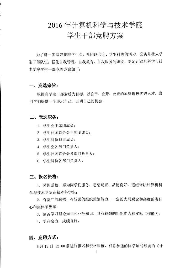以提高学生干部素质为目标,以公平、公开、公正的原则选拔优秀人才,给同学们提供一个展示自己、证明自己的机会。